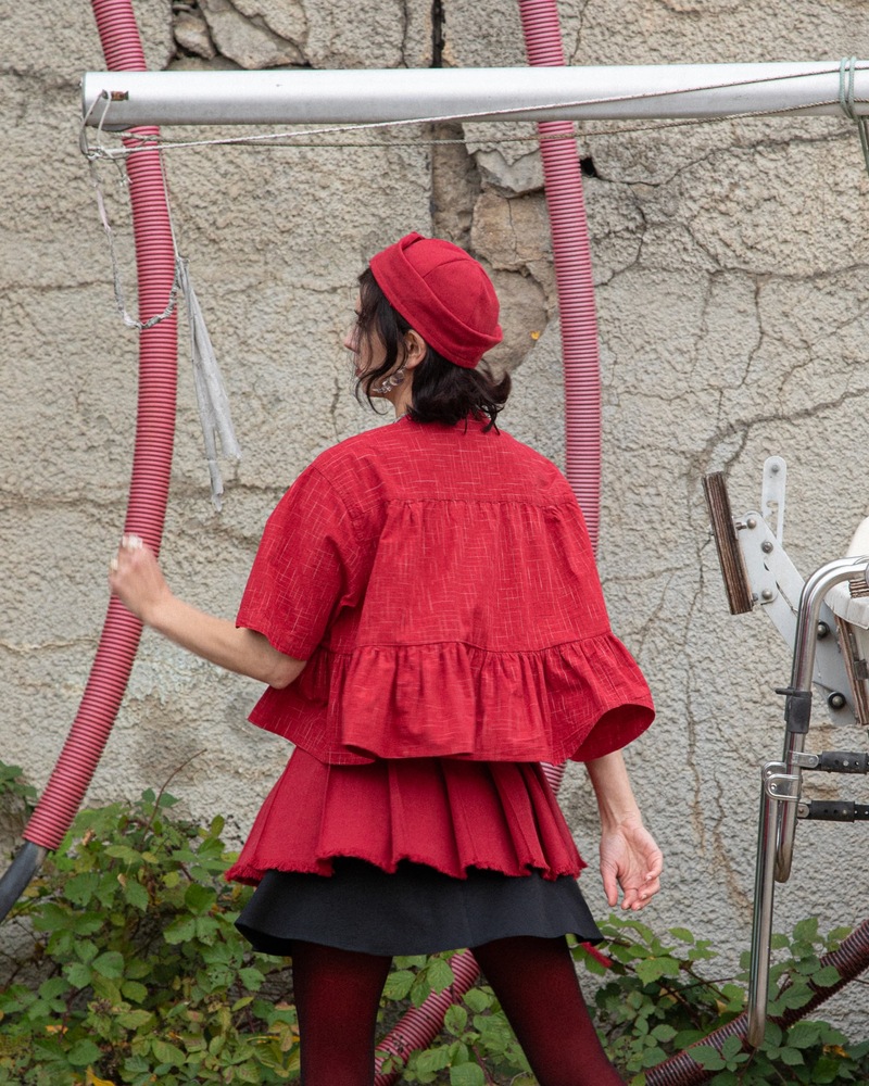 Materiál výrobku pochádza z druhej ruky. Preto prosím ospravedlňte prípadné malé nedokonalosti na látke pochádzajúce z jej minulého života.